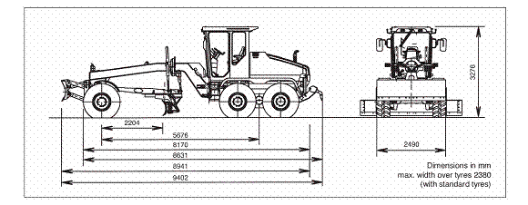 - Bomag BG 160. Радиус поворота - 6,9 м., высота отвала - 580 мм.