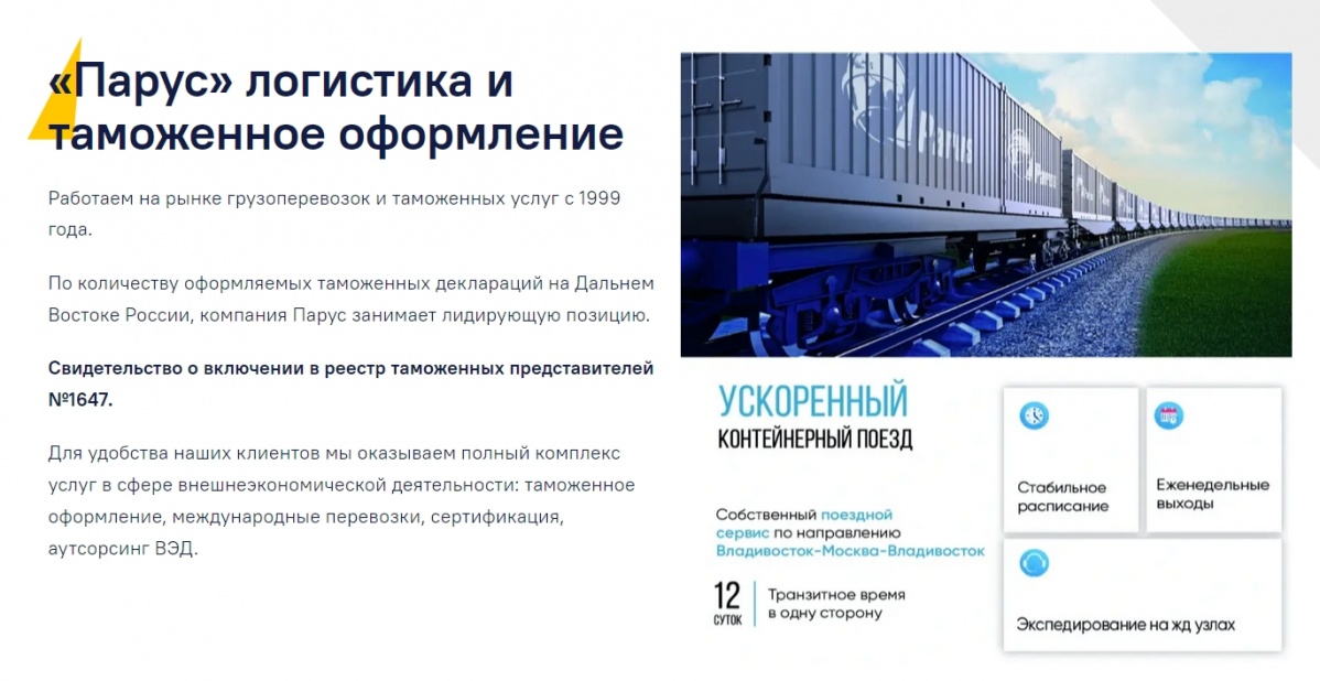 По количеству оформляемых таможенных деклараций на Дальнем Востоке России, компания Парус занимает лидирующую позицию.